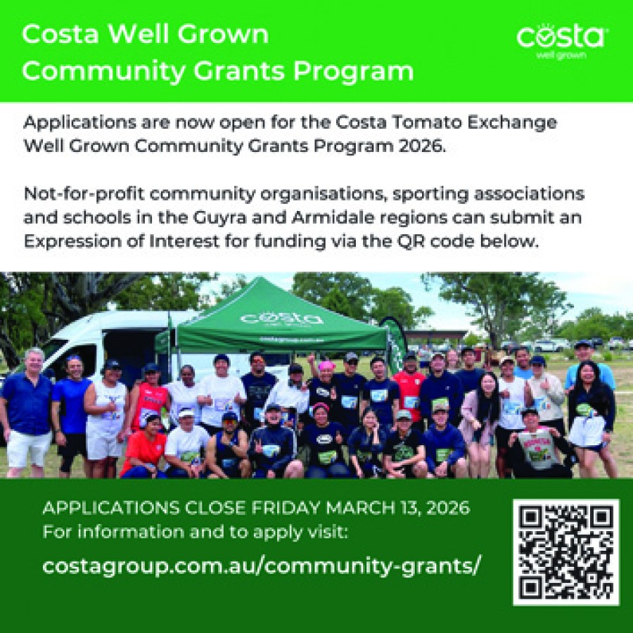 The annual Costa Well Grown Community Grants Program for the Armidale and Guyra region is now open for applications.