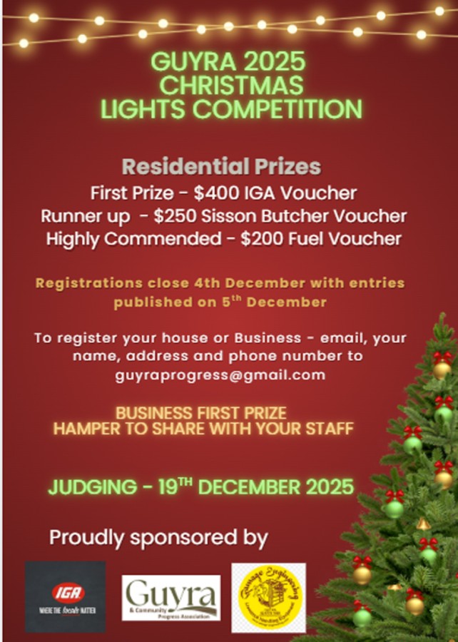 The Guyra and Community Progress Association (G&CPA) has officially launched the 2025 Guyra Christmas Lights Competition. Preparations are well underway, and residents and businesses are encouraged to help light up Guyra by decorating their homes and shopfronts in festive style.