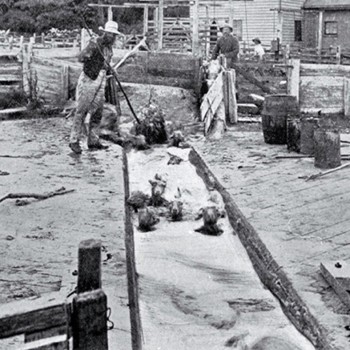 Affected sheep were scrubbed or dipped with a variety of washes in an effect to find a cure, and in the end a mixture of one pound of each tobacco and Sulphur to five gallons of boiling water. The sheep were dipped in the mixture as hot as they would bear it without scalding them.